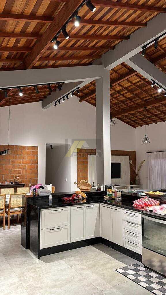 Com uma casa com 6 suítes, sendo uma suíte master, sala de jantar e estar ampla, cozinha.